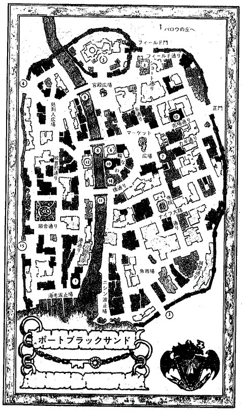 “輪なわ”の暗い路地を後にした私は、ポートブラックサンドの地図を確認する(クリックすると地図が出ます。もう一度クリックすると閉じます)。